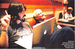 "Last night's show was way better than the night before. Dave's mom even came onstage to say hi to the crowd - she used to bea teacher, so she knows how to work a room. We did have one casualty: Dave smashed his head on the side of a bass drum. He had this big welt on his forehead - between that, his beard, his long hair and the rain, he looked like a homeless guy who'd been beaten up by another homeless guy. He had kind ofa Bumfight vibe going on.