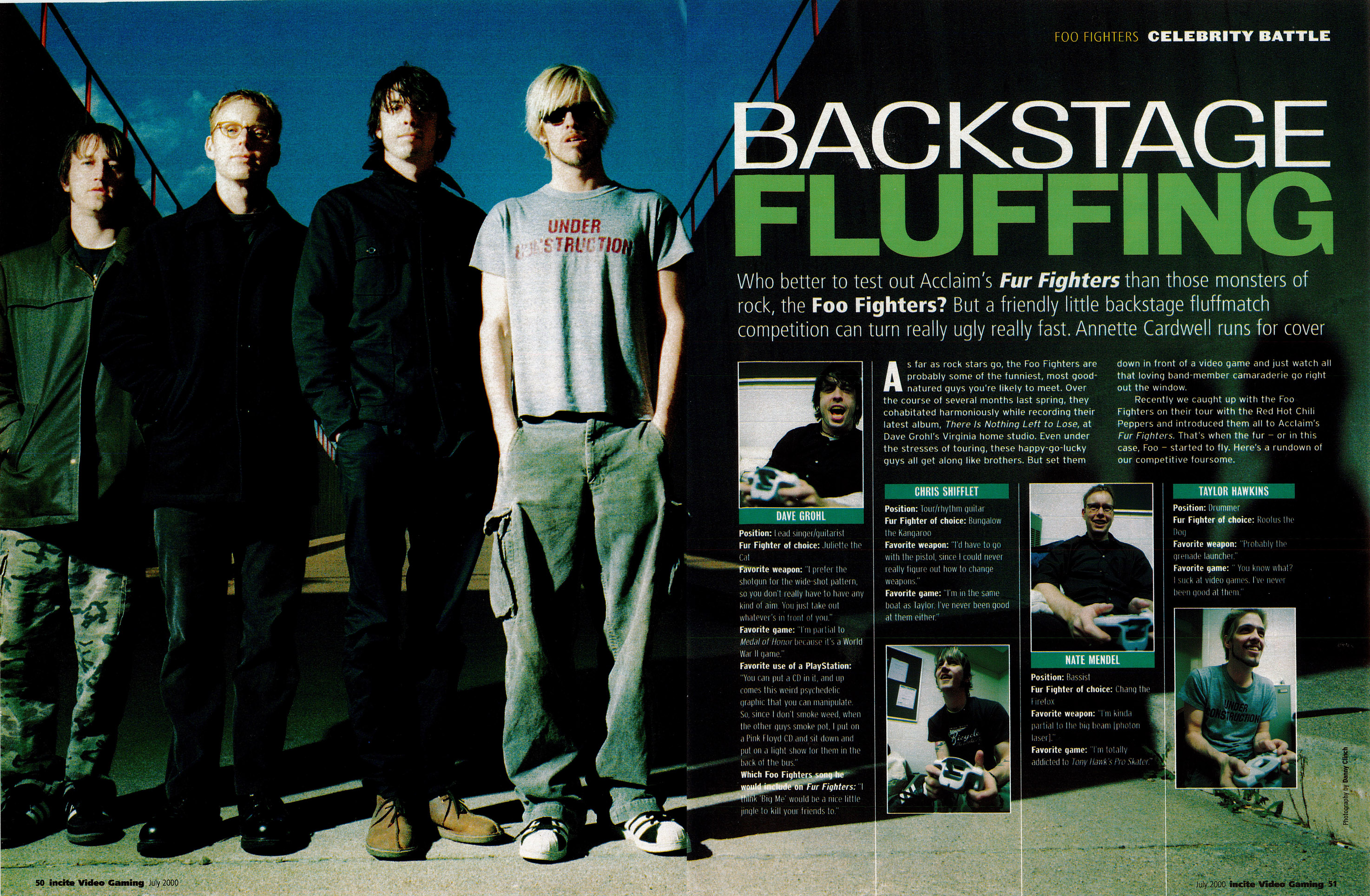 When the dust and fur settled, everyone backstage at the joint Foo Fighters/ Red Hot Chili Peppers show had gathered to see what all the commotion was about, and there was quite a crowd drawn by all the racket. Based on game performance, the winner was definitely Nate, who had slightly outgunned Dave in several final-round face-offs. Chris conceded that his initial win was most likely a fluke. ("I figured out that the only reason I won was that you [Annette - the journalist] were me first, and racked up a bunch of kills.")