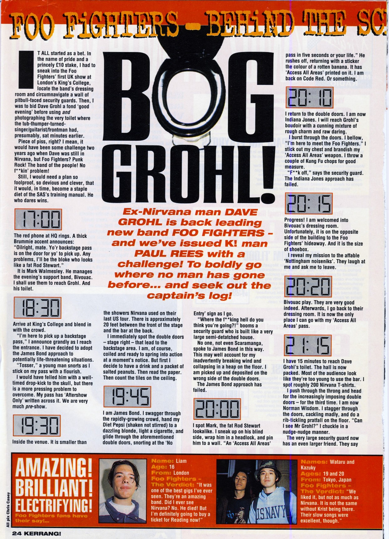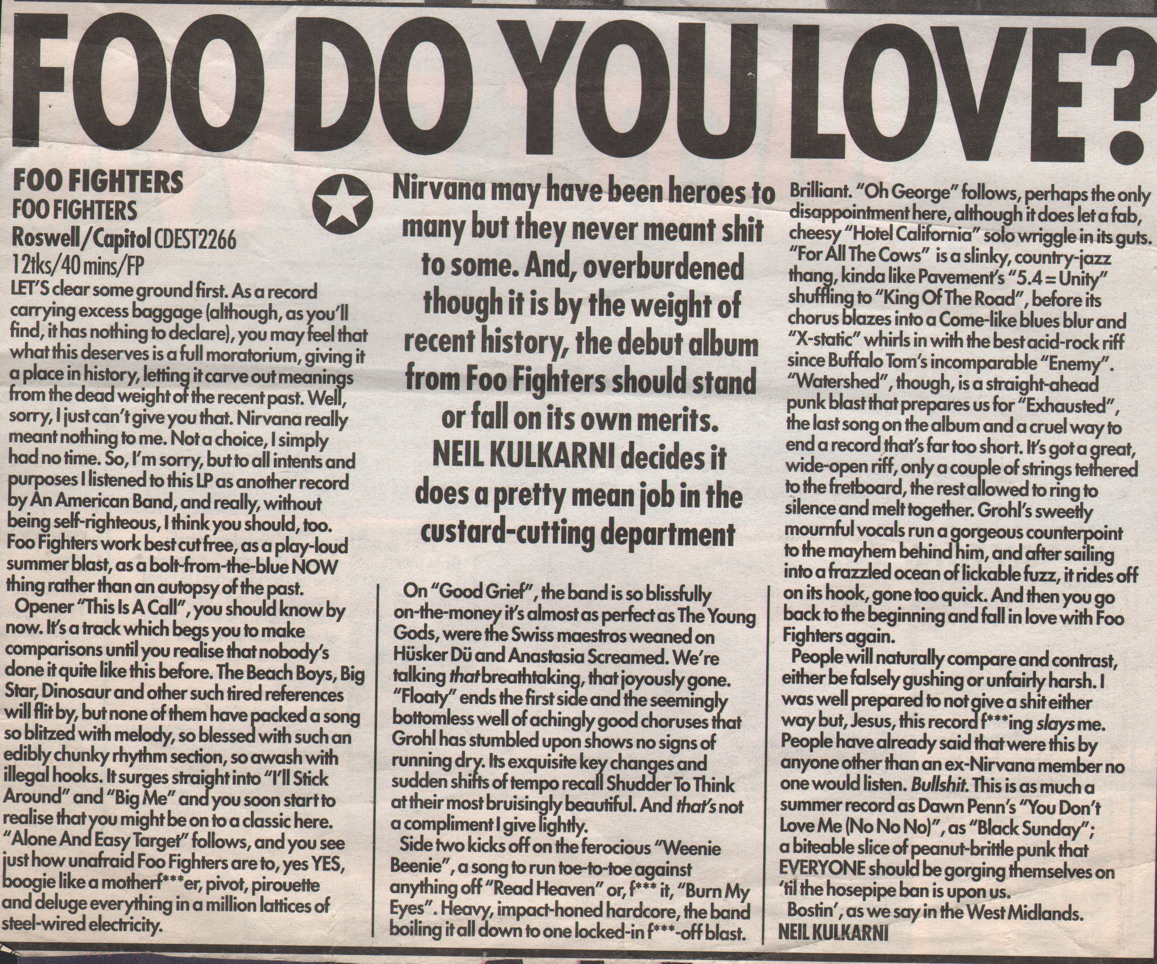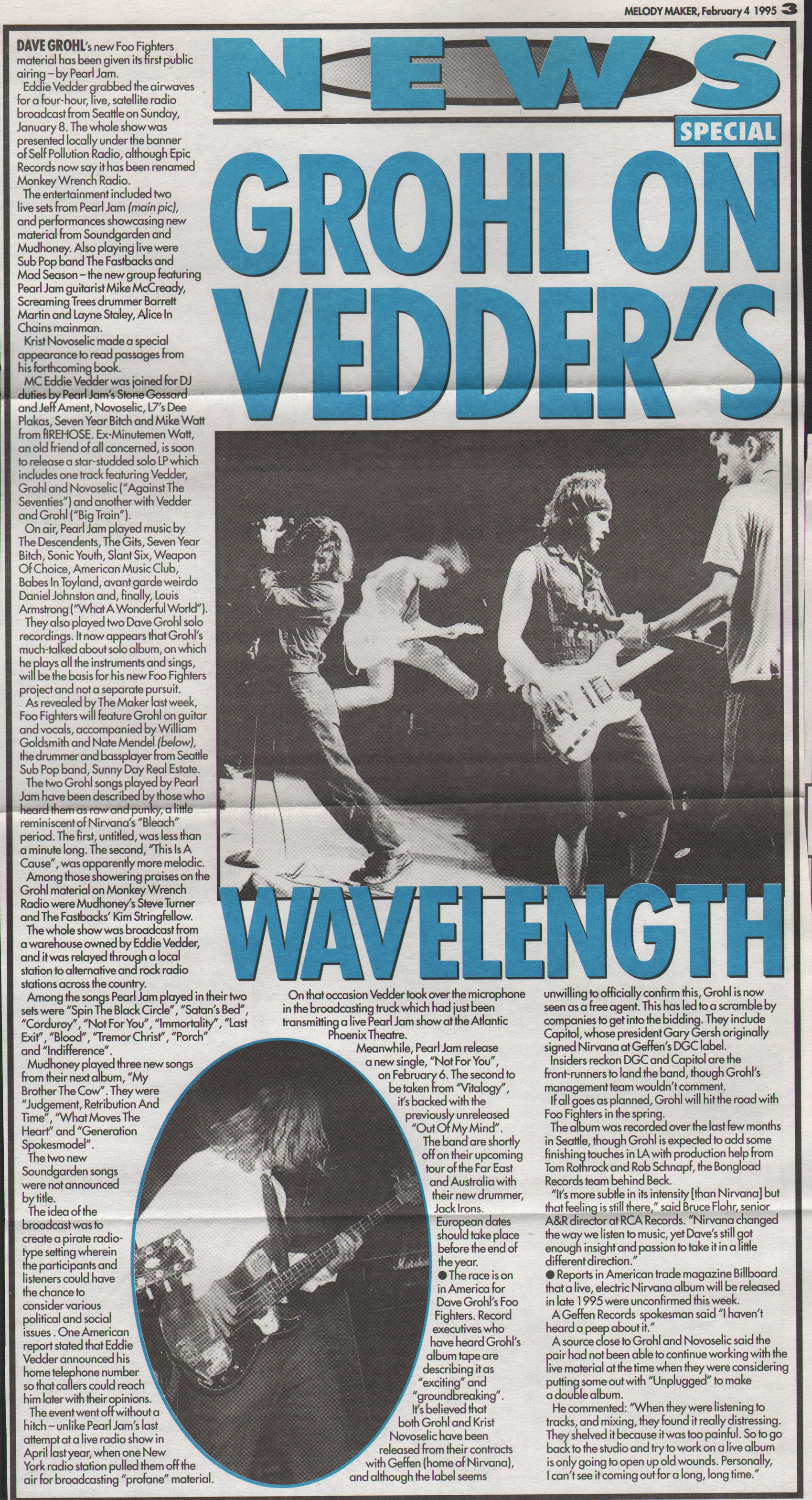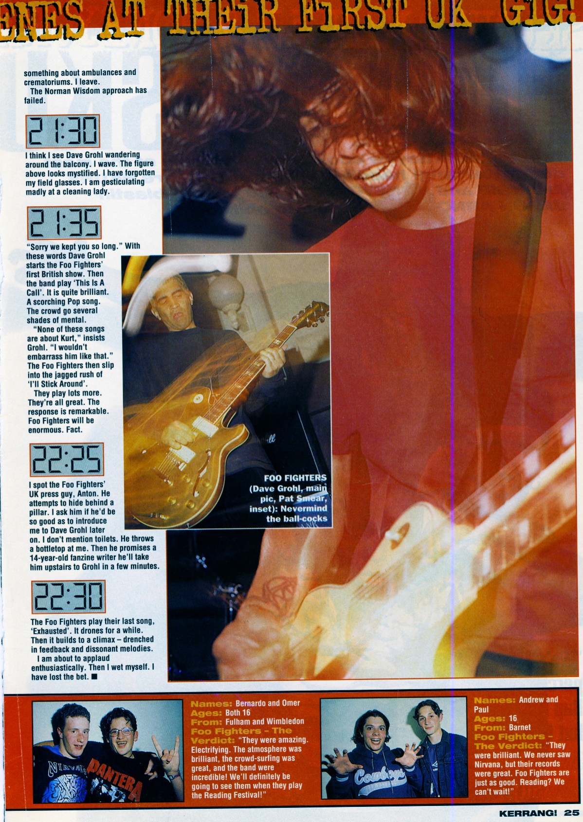 The following scans are news items and reviews from the UK press covering the rumours that Dave was planning a post-Nirvana band, right up until the release of the debut album. It makes for interesting reading, from the mistakes and inaccuracies when reviewing the demo tape to Kerrang's review of the first UK gig being more concerened with Dave's toilet than the music (and the journalist responsible is now the editor of Q). Some of these magazines are still around (Q, Kerrang!, NME) and some of them aren't (Vox, Raw, Melody Maker).