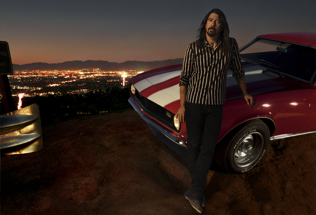 A Starline bus swings towards Mulholland Scenic Overlook on the edge of MRCA's Fryman Canyon Park. It stops in front of a scarlet 1968 Chevrolet Camaro parked on the side of the road, surrounded by a camera crew. The tourists look on, hoping they're privy to an early glimpse of Tinseltown magic. Standing next to the car is the star - Dave Grohl, frontman of Foo Fighters, former drummer of Nirvana and all-around rock'n'roll firebrand for the past 30 years. The tourists don't see Grohl. They're focused on the Camaro. True to form, Grohl can't resist taking centre stage. "Gwen Stefani's house is right there!" he shouts. It really is the house that No Doubt built, Grohl attests. "My kids went to school over there with Gwen's kids," he continues, pointing across the freeway and to the white building dangling over the side of the cliff. "So, they would have play dates and go to this crazy house, which is like the Guggenheim. It's insaaane."