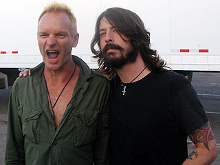 Backstage while supporting 'The Police'.